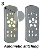 Bad edges - created by gaps between triangles - can be automati-cally stitched. Just indicate the desired tolerance and the number of iterations and with a single mouse click, Magics closes the gaps without exceeding the indicated tolerance. By stitching in iterations, you ensure that even the smallest details of your design are pre-served during stitching (picture 3).