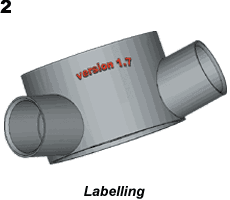 Parts can be labelled with characters in any Windows True Type Font in any size and at any location on the model, even on complex surfaces. Information (e.g. version number) can be engraved or embossed on the part (picture 2).