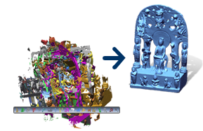 Accurate Alignment and MergingThe Mesh Buildup Wizard™ converts raw 3D scan shots into complete mesh models in five simple steps. Start by choosing the scan type, remove unwanted data, pre-align multiple scan shots, best fit all scans together and merge them into a single mesh. The wizard guides you through each step, so it’s easy to get great results every time.