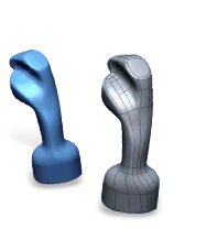 Automatic Mesh to NURBS Surface ConversionRapidform XOS has powerful Auto Surfacing functionality, so you can convert a polygon mesh into a lightweight surface model for use in any NURBS software. Rapidform’s advanced patch layout technology lets you choose between two different types of surface models: feature-following or uniform patch layout. Feature-following surface models create fewer NURBS patches for objects with well-defined features. Uniform layout models create more NURBS patches and capture complex detail with ease. The result is CAD-like surfaces that balance accuracy with smoothness.
