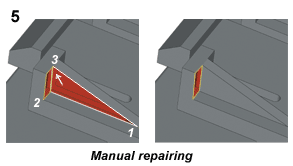 At all times you can also manually repair defective or missing triangles. With a simple mouse click selected triangles can be deleted, normals can be inverted and new triangles can be created e.g. to fill gaps (picture 5).