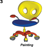 machines, painting parts is simple in Magics. Different colours can manually or automatically be assigned to triangles and surfaces. The colours can be adjusted to compensate for colour changes due to the RP process. Colour information is also preserved when importing VRML files (picture 3).