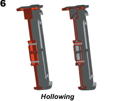 hollowed. These parts are not only faster to build, but are also more accurate because less internal stresses are created during building (picture 6).