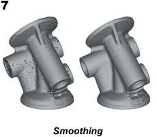 Using a 3D scanner to create an STL file of an object always entails noise. The triangle smoother removes the noise, this way improving the quality of the surface (picture 7).